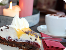 Hochwertiger Heimbs-Kaffee & -Spezialitäten, erlesene Trinkschokoladen, ein umfangreiches, wertvolles Sortiment an losem Tee, frisch gebackene Waffeln & Flammkuchen, Bratäpfel, gute Weine und nicht zuletzt die anderen Tortensorten aus unserer Backstube möchten letztendlich nur für eines sorgen:
